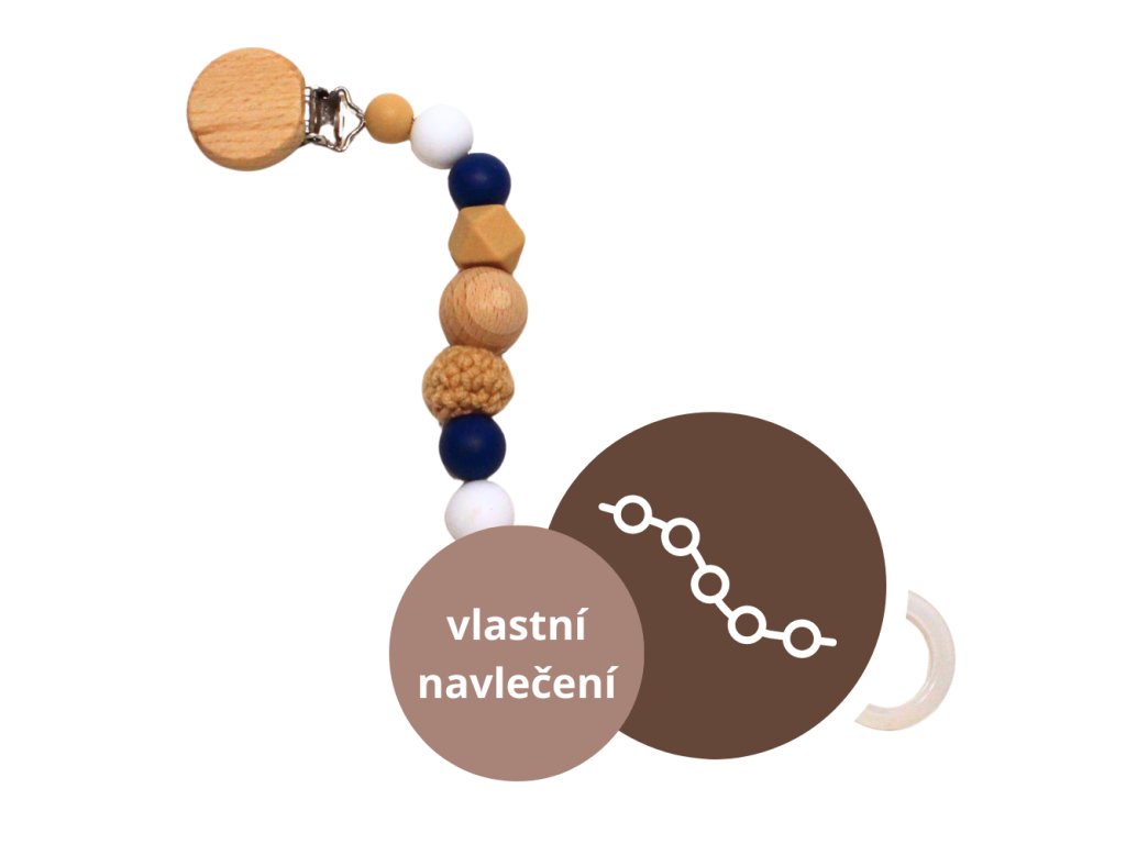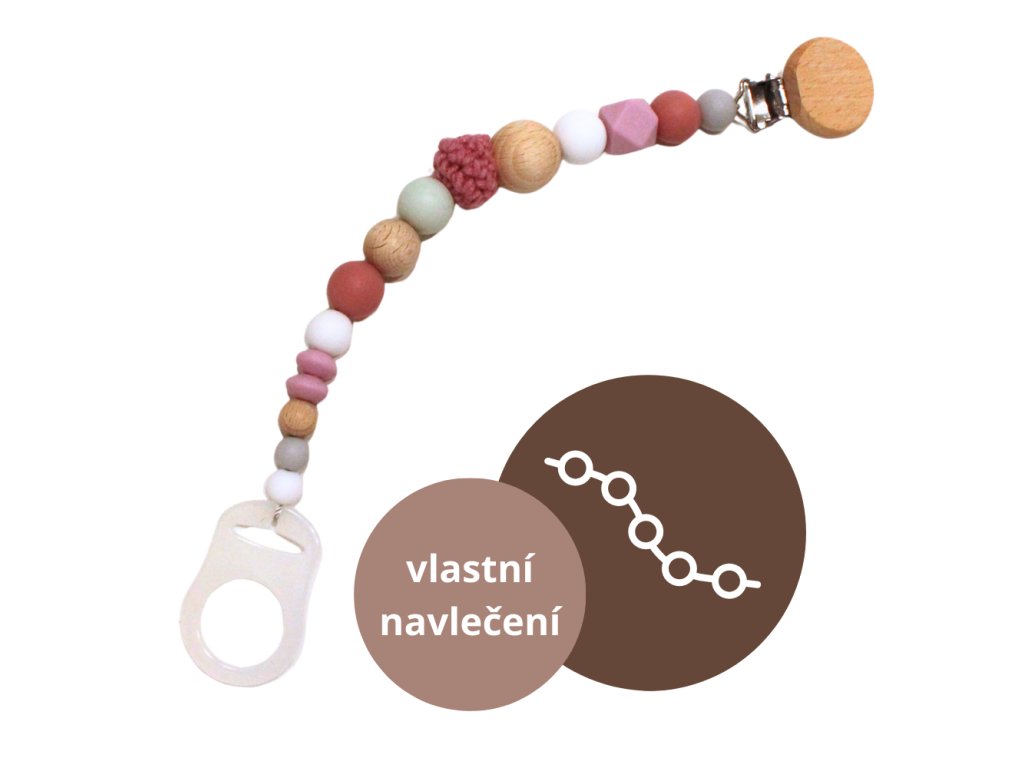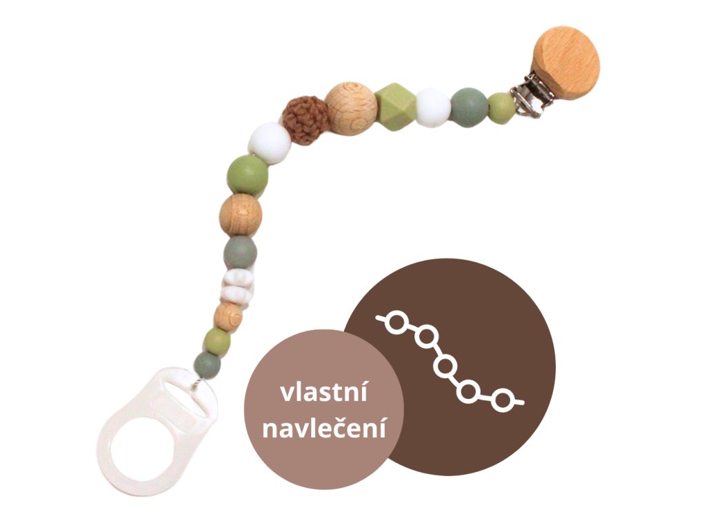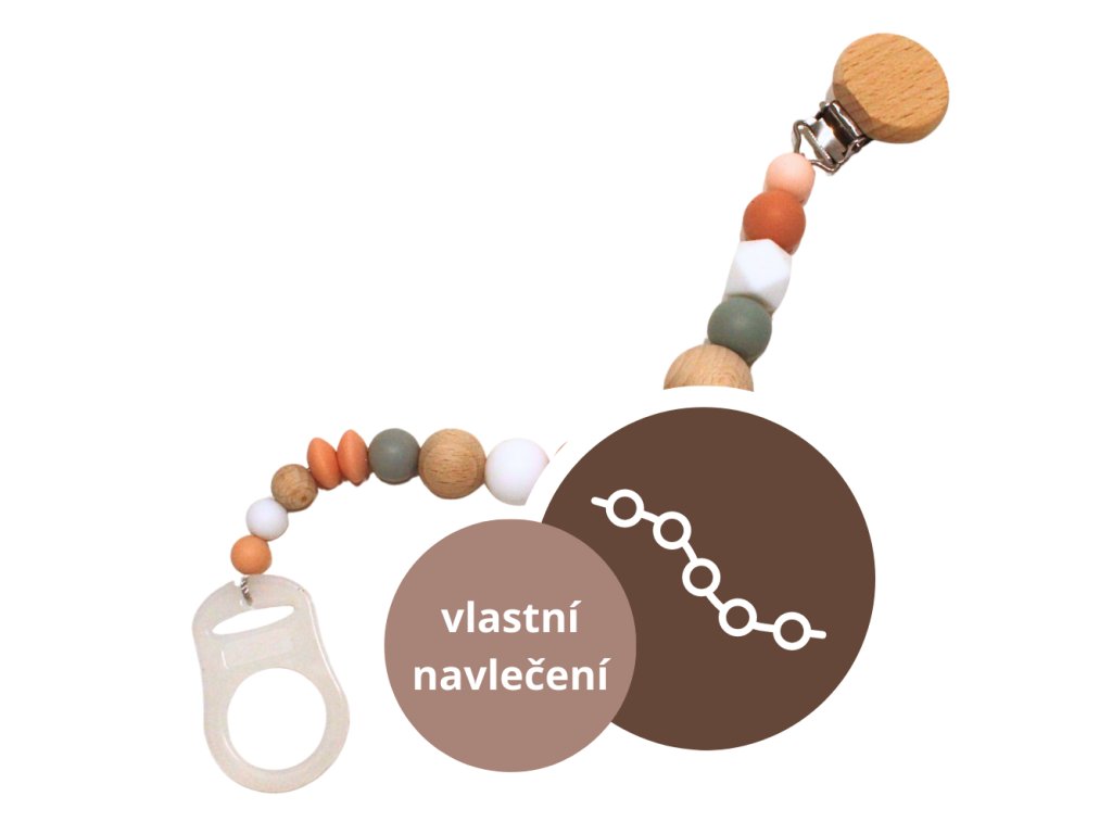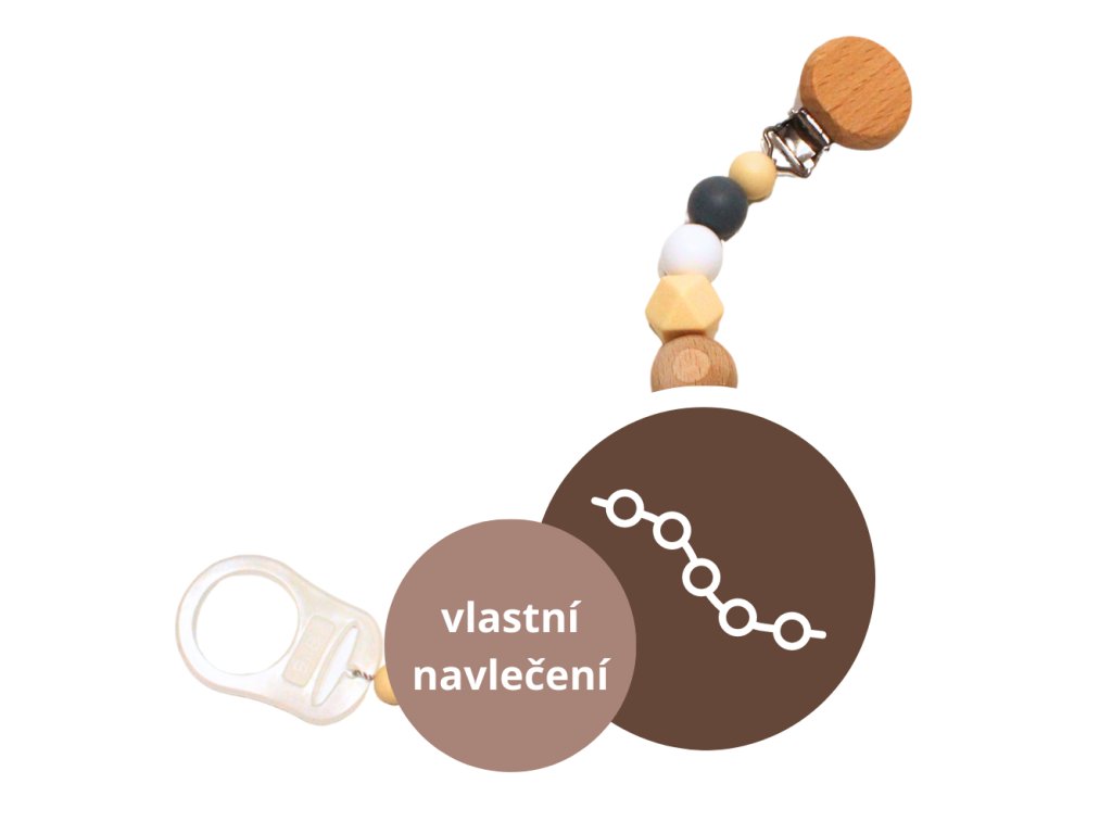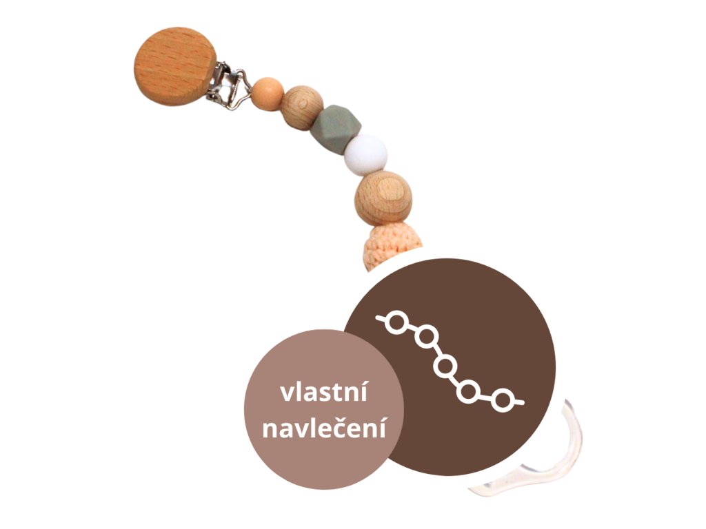 Je to praktický doplněk, který drží dudlík bezpečně přichycený k oblečení – a přitom respektuje přírodní jednoduchost celé kolekce.