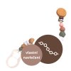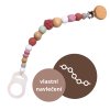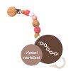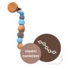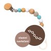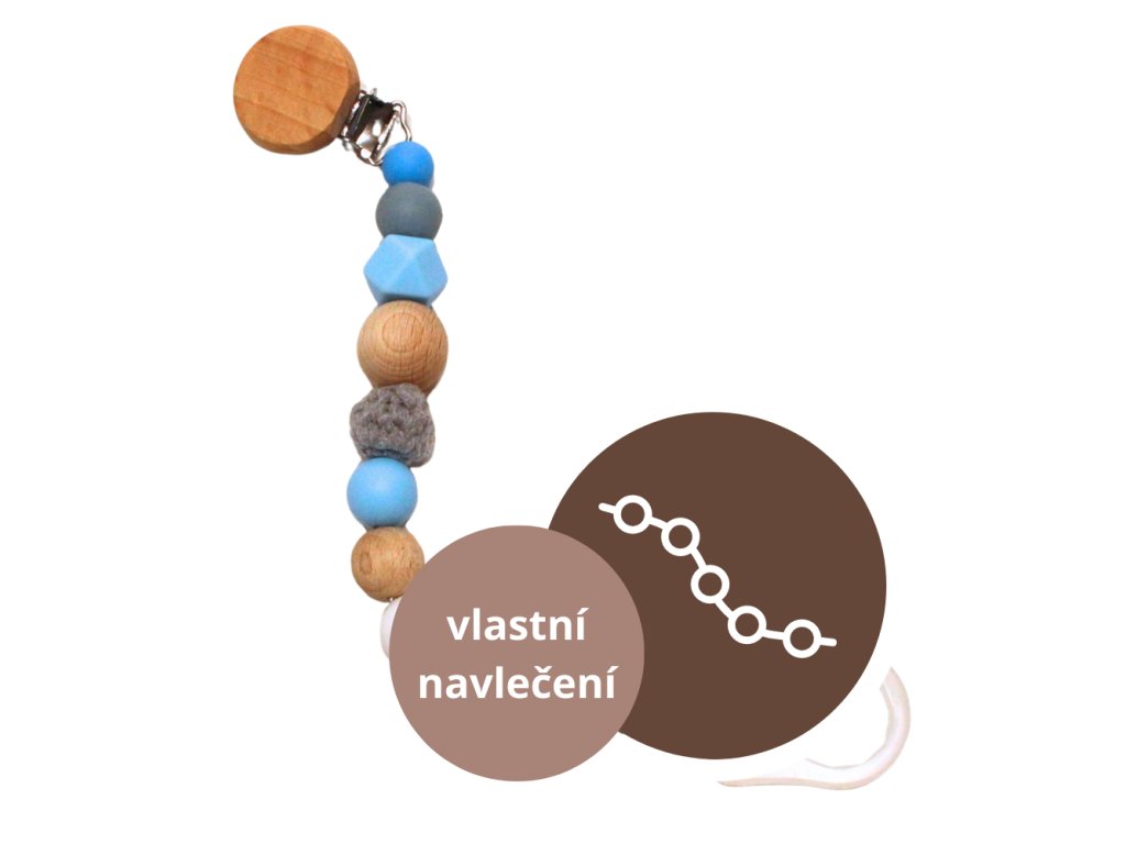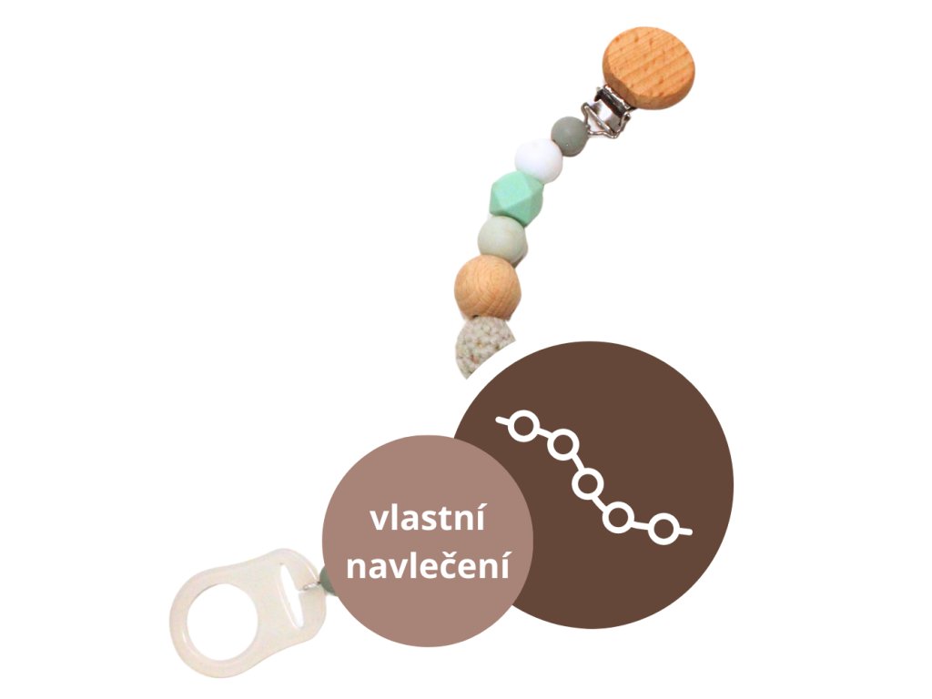 Praktický klip na dudlík z potravinářského silikonu a přírodního bukového dřeva, který udrží dudlík vždy po ruce – a zároveň může sloužit jako jemná pomůcka ke stimulaci dásní.